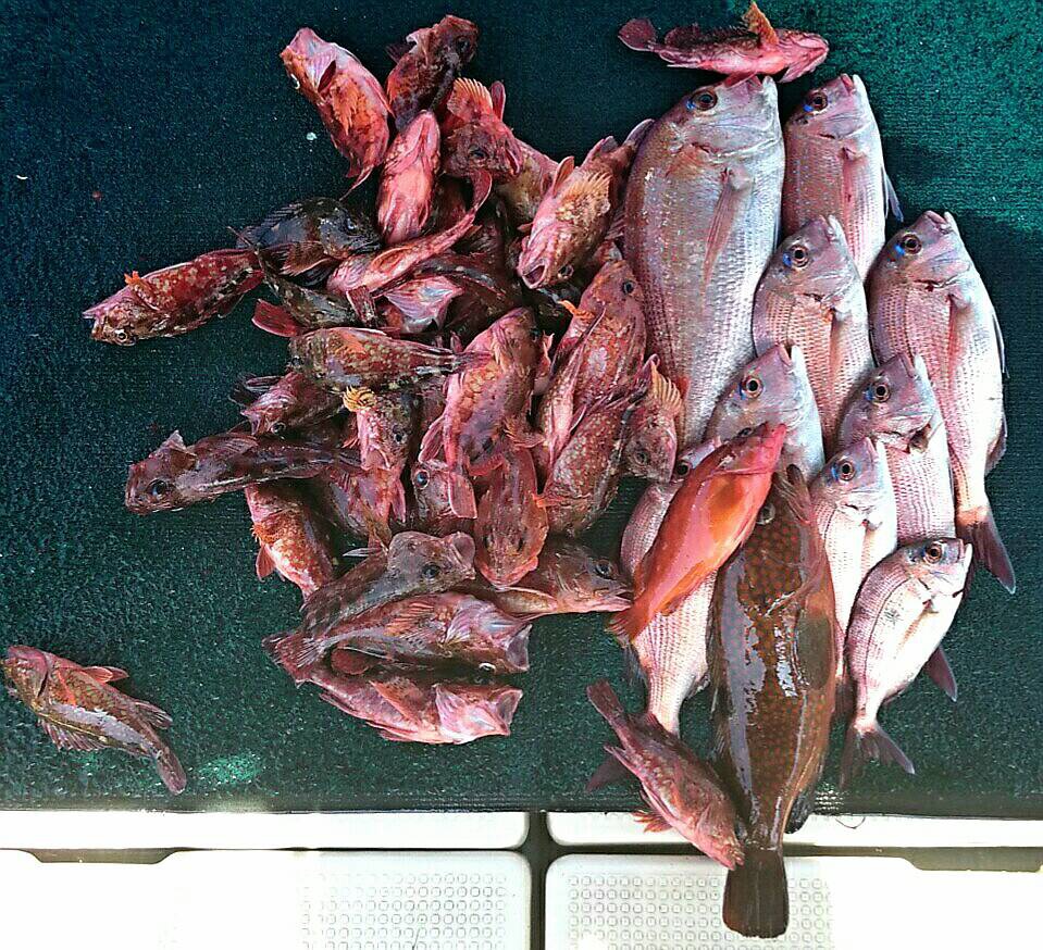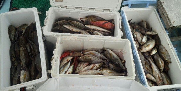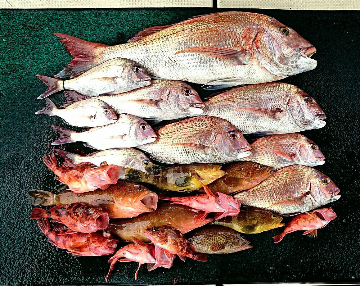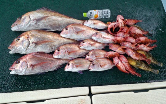 一日の釣果です。マダイ沢山釣れました。
